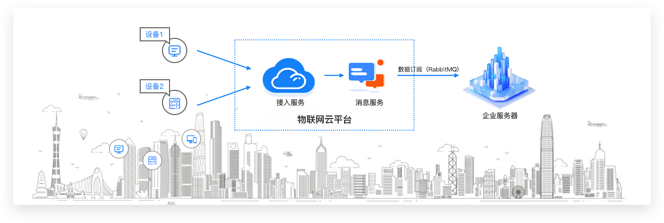 | 数据订阅流转 | 设备接入jinnian金年会物联网平台后,企业服务端可以通过配置服务端订阅,直接订阅产品下多种类型的消息,物联网平台会将产品下所有设备中已订阅类型的消息,转发至您的服务器。 |