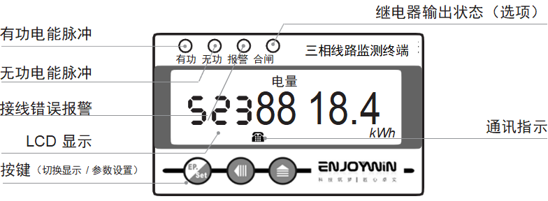 * 液晶显示,8位数字(0.00-99999999 kWh);